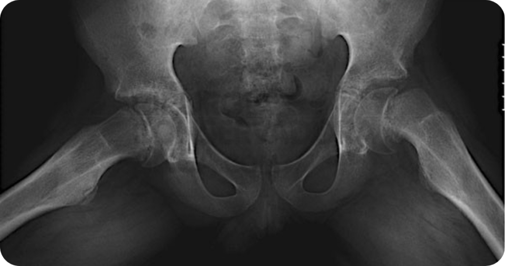 Ela acontece quando a cabeça do fêmur (a “bolinha” do osso da coxa) desliza para trás em relação ao colo do fêmur, como se fosse uma bola de sorvete escorregando da casquinha.